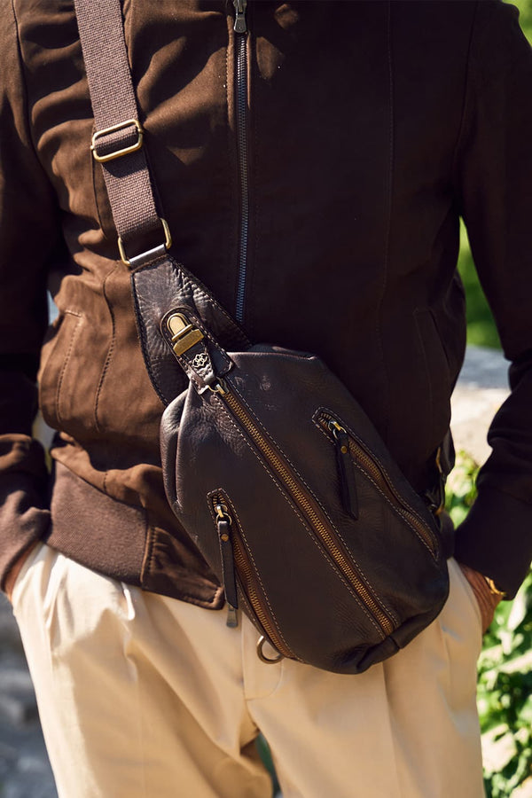 Esprime un'eleganza senza tempo e un'aura di raffinatezza. Un bomber di pelle, ma con l'unicità del camoscio. Il canolé elasticizzato, caratteristica immancabile di questo modello, é abbinato al collo alto e alla morbidezza del pellame. Questo è ciò che rende la giacca Aldo classica e moderno, allo stesso tempo. La sua texture vellutata e delicata al tatto aggiunge una nota di lusso e comfort al tuo guardaroba. Presenta linee pulite e una silhouette slanciata, adattandosi perfettamente alla figura maschile. Vera pelle di agnello 100% Made in Italy. Vestibilità regolare Chiusura con bottoni Canolé elasticizzati sui polsi e sul collo Due tasche laterali con bottoni Due tasche interne: una con zip e una con bottone Fodera 100% viscosa